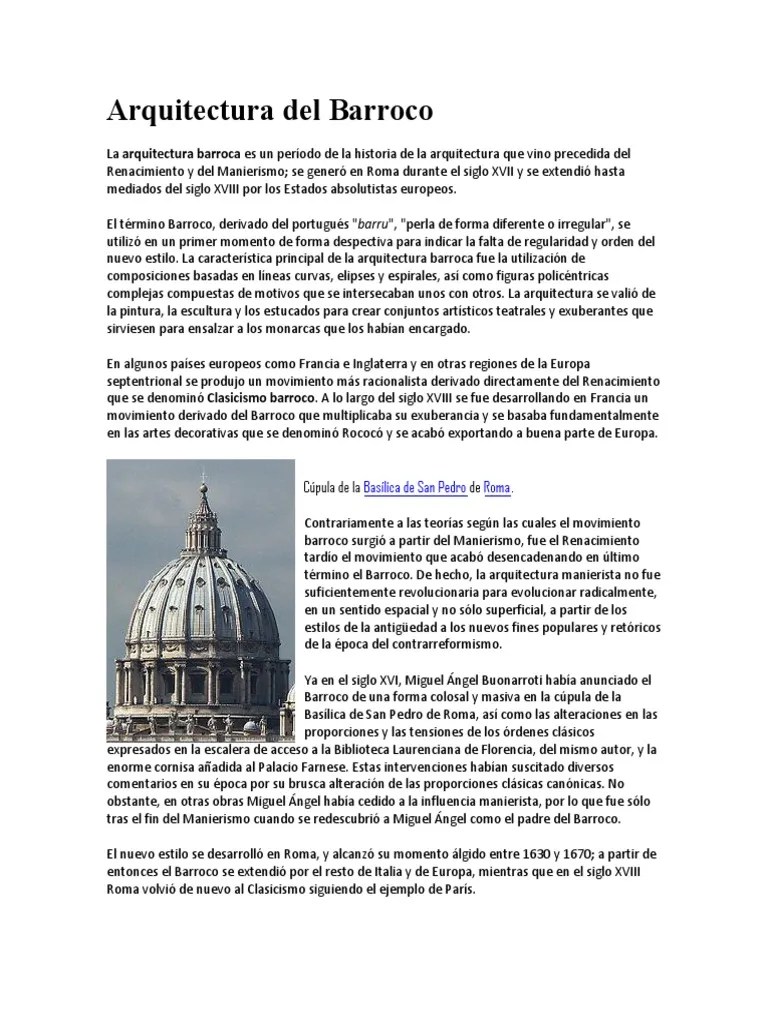 Arquitectura barroca francesa pdf huge palace and full gardens central facade of the palace of versailles.formula the main characteristics of a certain architectural style in a particular country is always a challenge... Las formas se hacen onduladas, los muros y los entablamentos se alabean y dinamizan, los frontones se parten y resuelven en curvas y contracurvas hasta la completa desaparición de las normas y proporciones clásicas. La plenitud del barroco castellano a) los churriguera b) pedro ribera c) narciso tomé 5.3.. La arquitectura barroca en francia, españa e inglaterra asignatura: